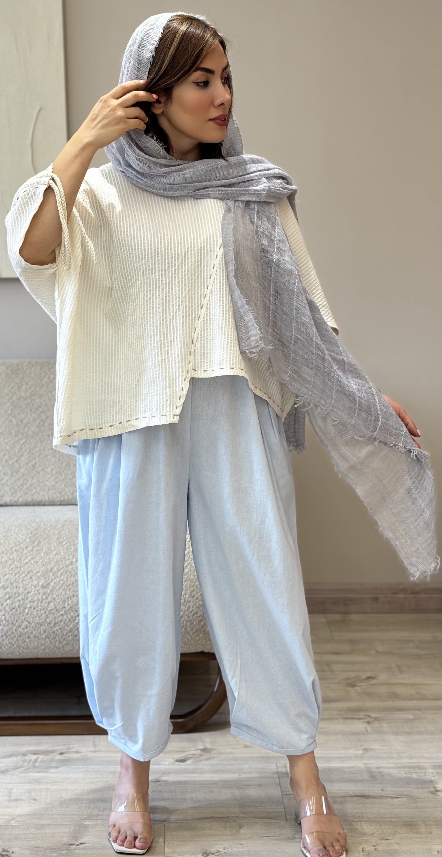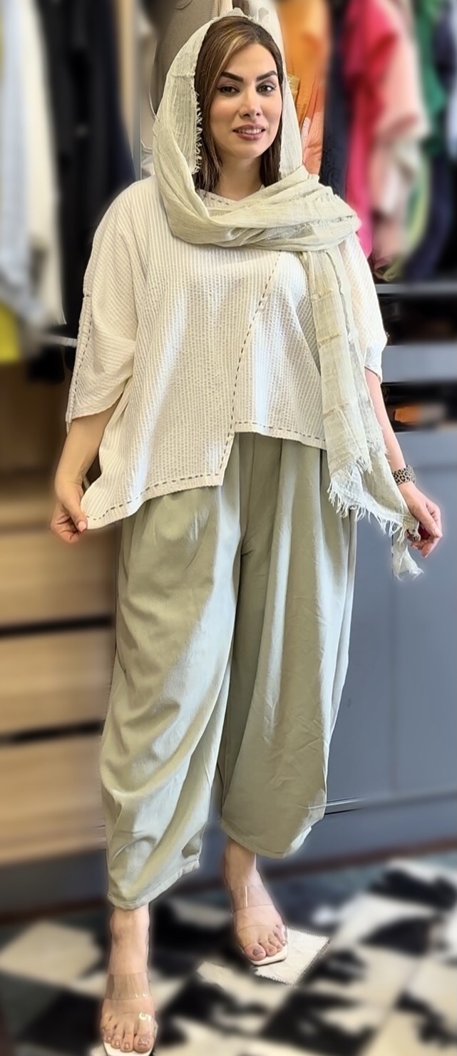 ست شومیز و شلوار زنانه برند MoMo جنس لنین